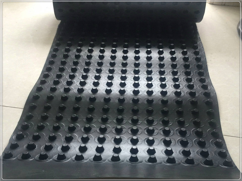 排水板鋪設(shè)時自然展開、疏松地鋪設(shè)于規(guī)劃好的位置。排水板可按排水坡度的縱向或橫向統(tǒng)一的方向鋪設(shè)。搭接必須按照排水坡度的方向搭接,不允許逆向搭接。個別部位需要臨時固定時,采用瀝青馬蹄脂點式黏結(jié)固定。排水板的終止收口需要結(jié)合建筑部位設(shè)計確定。