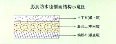膨潤防水毯是一種專門用于人工湖泊水景、垃圾填埋場、地下車庫、樓頂花園、水池、油庫及化學(xué)品堆場等防滲漏的土工合成材料,它是由高膨脹性的鈉基膨潤土填充在特制的復(fù)合土工布和無紡布之間,用針刺法制成的膨潤土防滲墊可形成許多小的纖維空間,是膨潤土顆粒不能像一個方向流動,遇水時在墊內(nèi)形成均勻高密度的膠狀防水層,有效的防止水的滲漏。